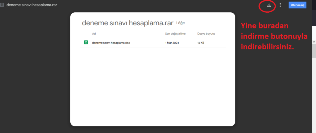 Bazen zip,rar vb. dosyalarla büyük boyutlu dosyaları da aşağıdaki ekrandaki gibi indir butonuna tıklayarak indirebilirsiniz.